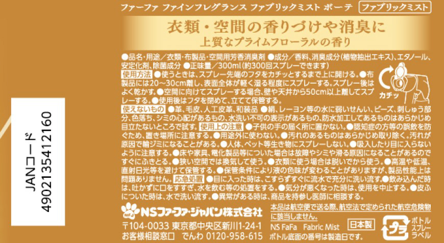 FaFa(ファーファ)ファインフレグランス ファブリックミスト ボーテ 本体 300ml ボーテ