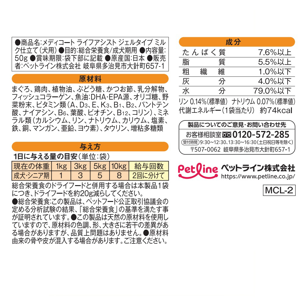 ペットライン メディコート ライフアシスト ジェルタイプ ミルク仕立て【介護食/総合栄養食/国産】 50g