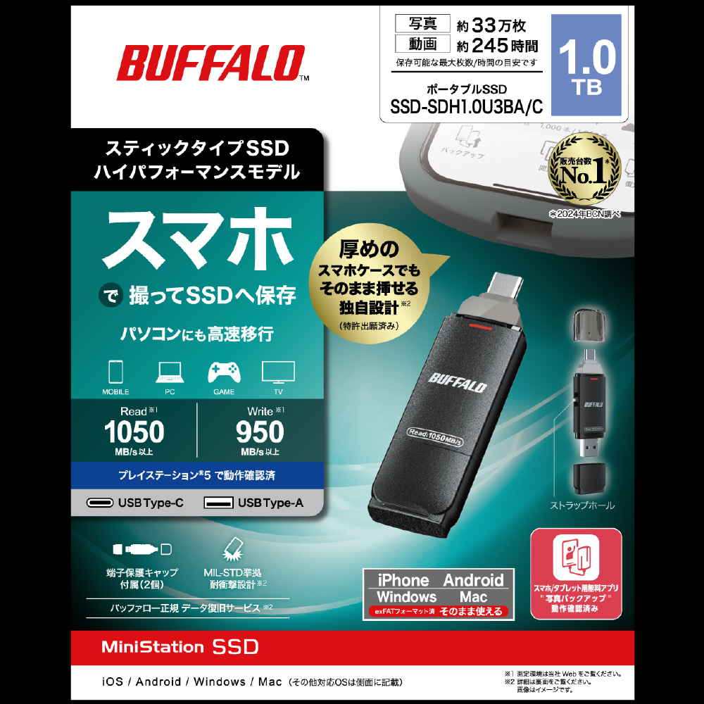 本商品は、バッファローアプリ「写真バックアップ」(無料)に対応。大切な思い出をもっと簡単に保存できます。