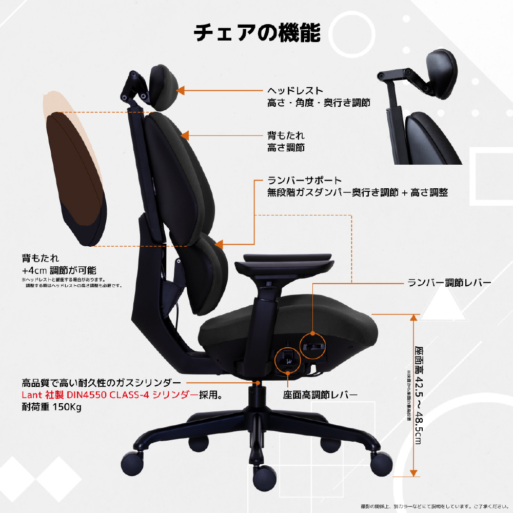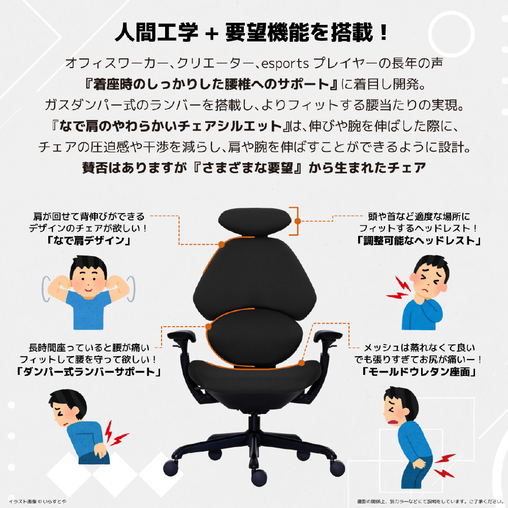 ■オフィスワーカー、クリエーター、esportsプレイヤーの長年の声「着座時のしっかりした腰椎へのサポート」に着目し開発。