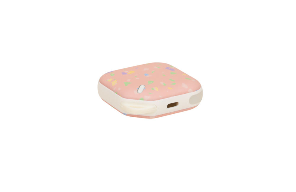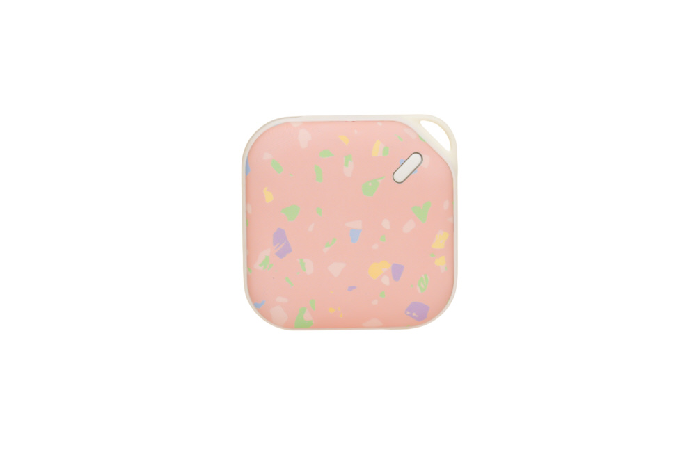 手のひらに収まるコンパクトサイズのLEDライト付き充電式カイロ