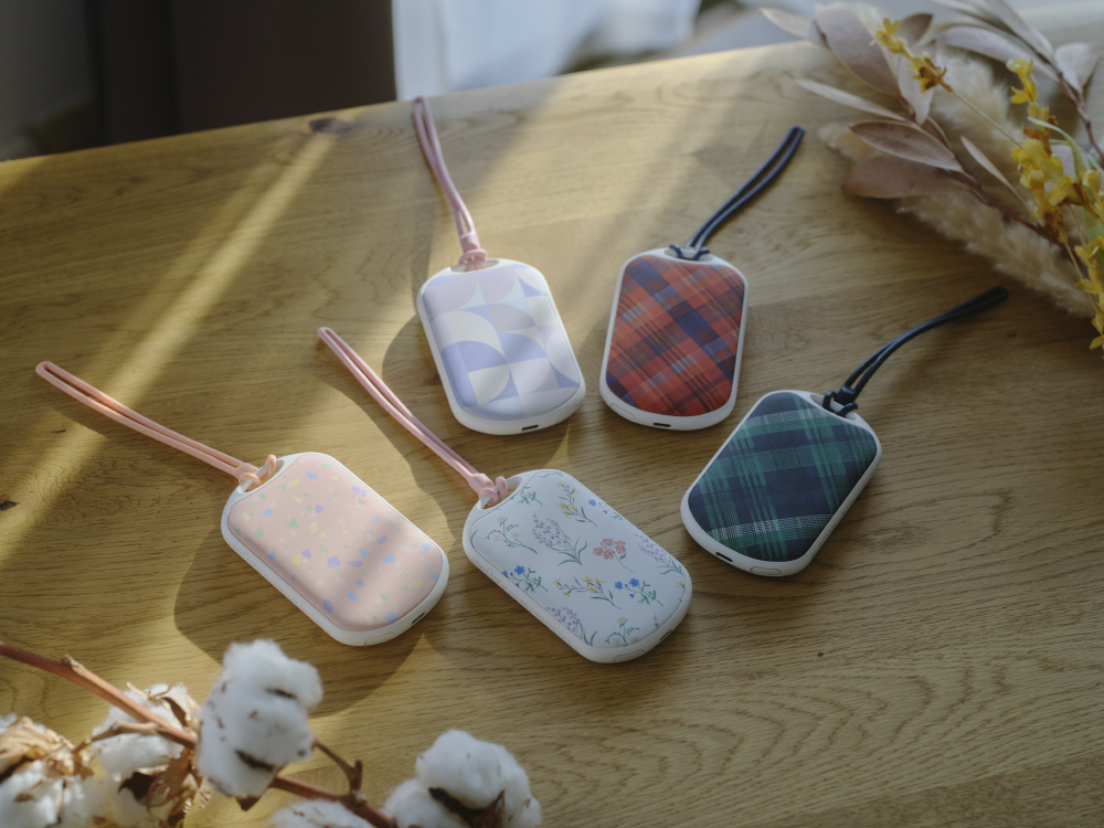 手のひら全体を温められるモバイルバッテリー機能付きオーバル型充電式カイロ