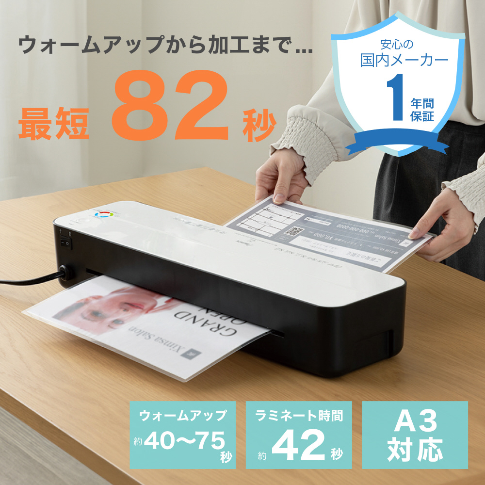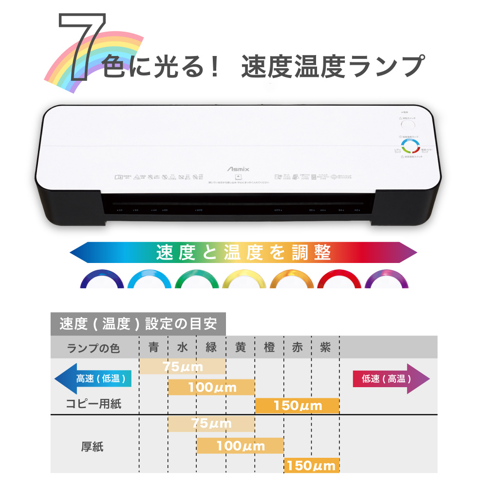 速度と温度を7段階で調整!仕上がりキレイな4本ローラーラミネーター LA411A3 Asmix LA411A3 [A3サイズ]
