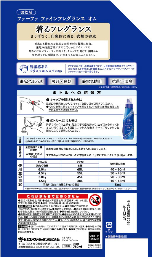 【ケース販売】FaFa(ファーファ) ファインフレグランス オム 詰替780ml×12