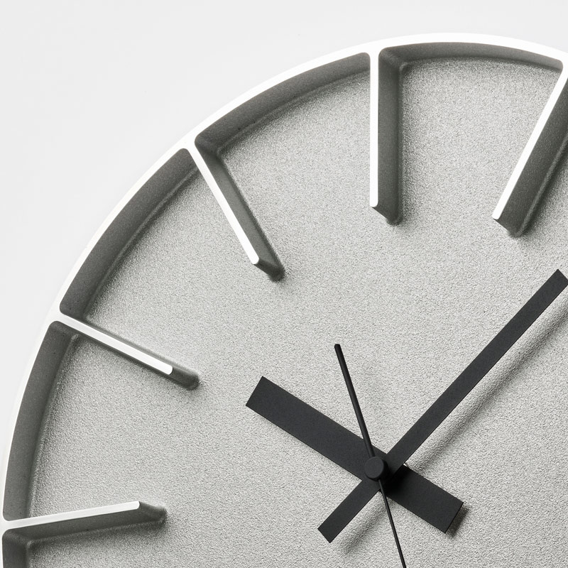 AZUMI によるアルミニウムクロック。アルミ一体成型の豊かな品質とシンプルで力強いデザインが特徴です。