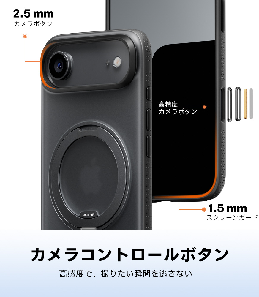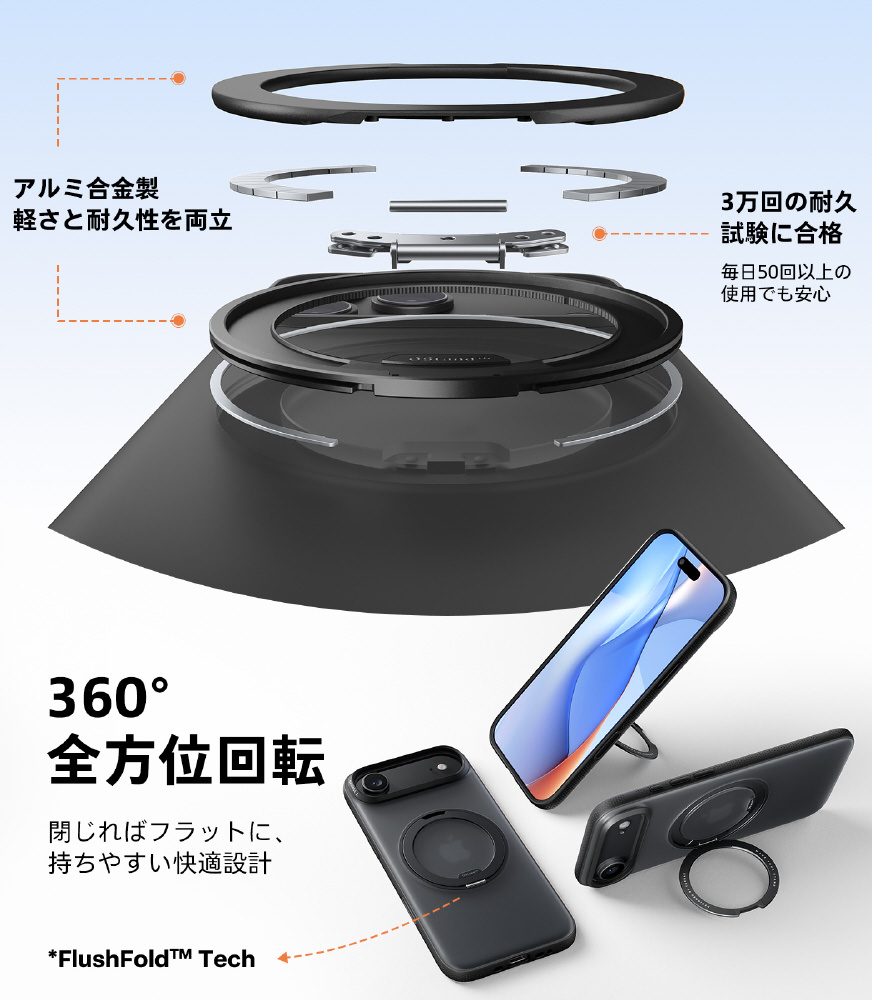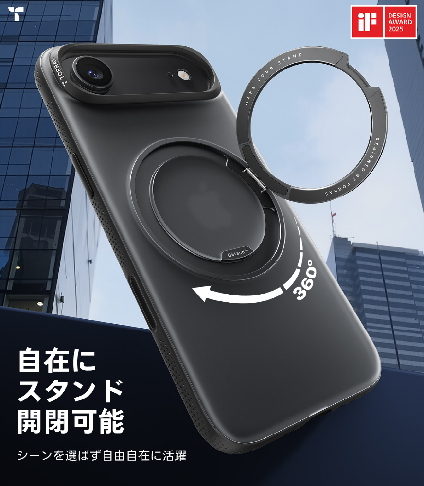・アップグレードされた360°回転式キックスタンドでお好きな角度でスマートフォンを支えることができます。