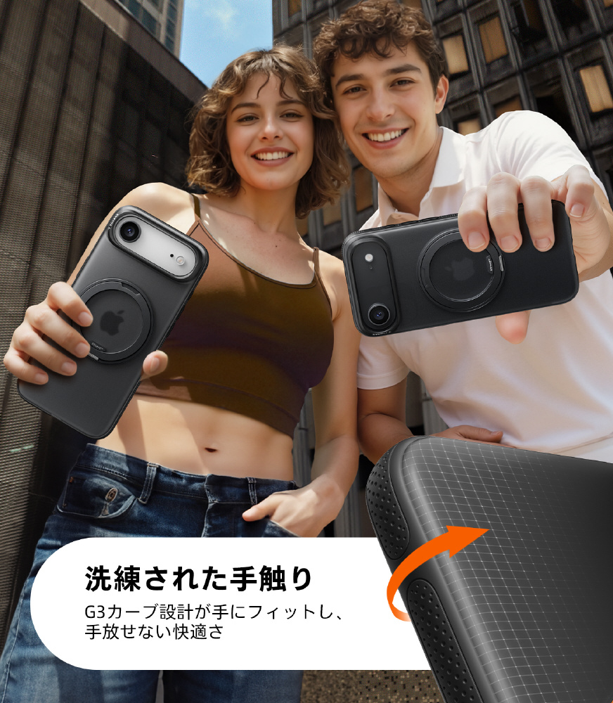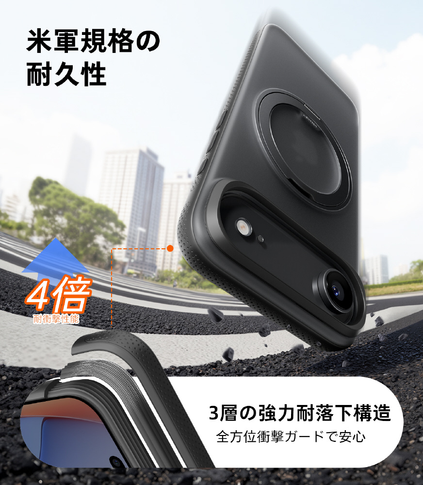 ・TORRAS独自の「Halbach」マグネット技術により、N52マグネットブラケット38個が内蔵され、MagSafeアクセサリーにしっかり吸着します。(Apple純正MagSafeケースの磁力(10N)の約1.7倍。)