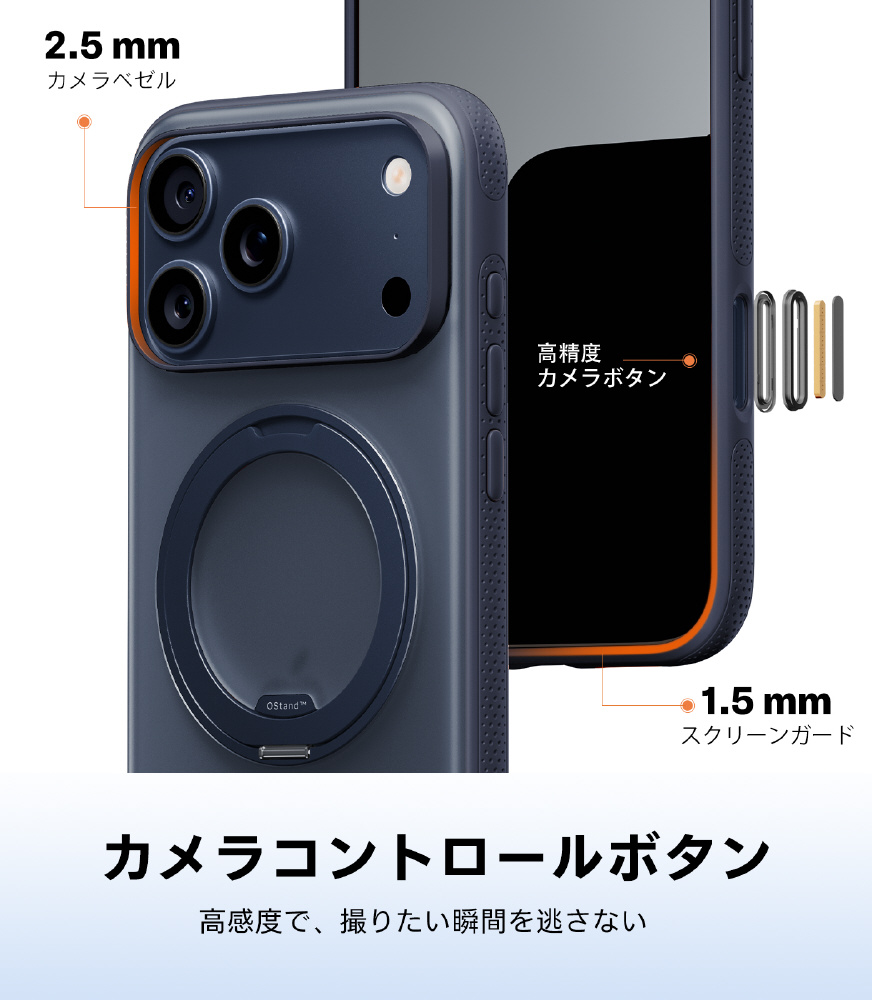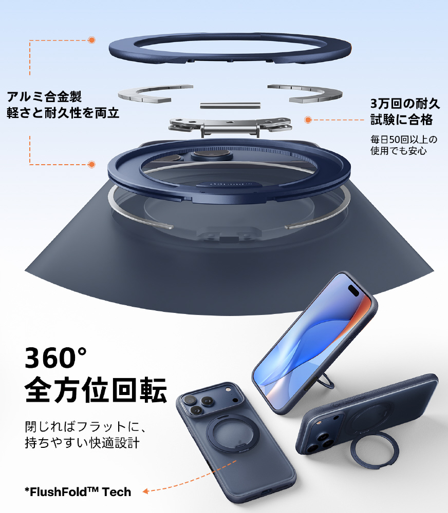 ・アップグレードされた360°回転式キックスタンドでお好きな角度でスマートフォンを支えることができます。