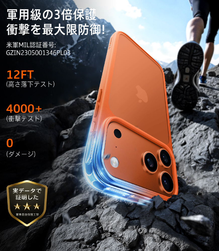 ・米軍規格MIL-STD-810Gに準拠。3.66mからの落下にも耐えるタフな設計。エコ素材を採用し、安心安全に配慮しました。