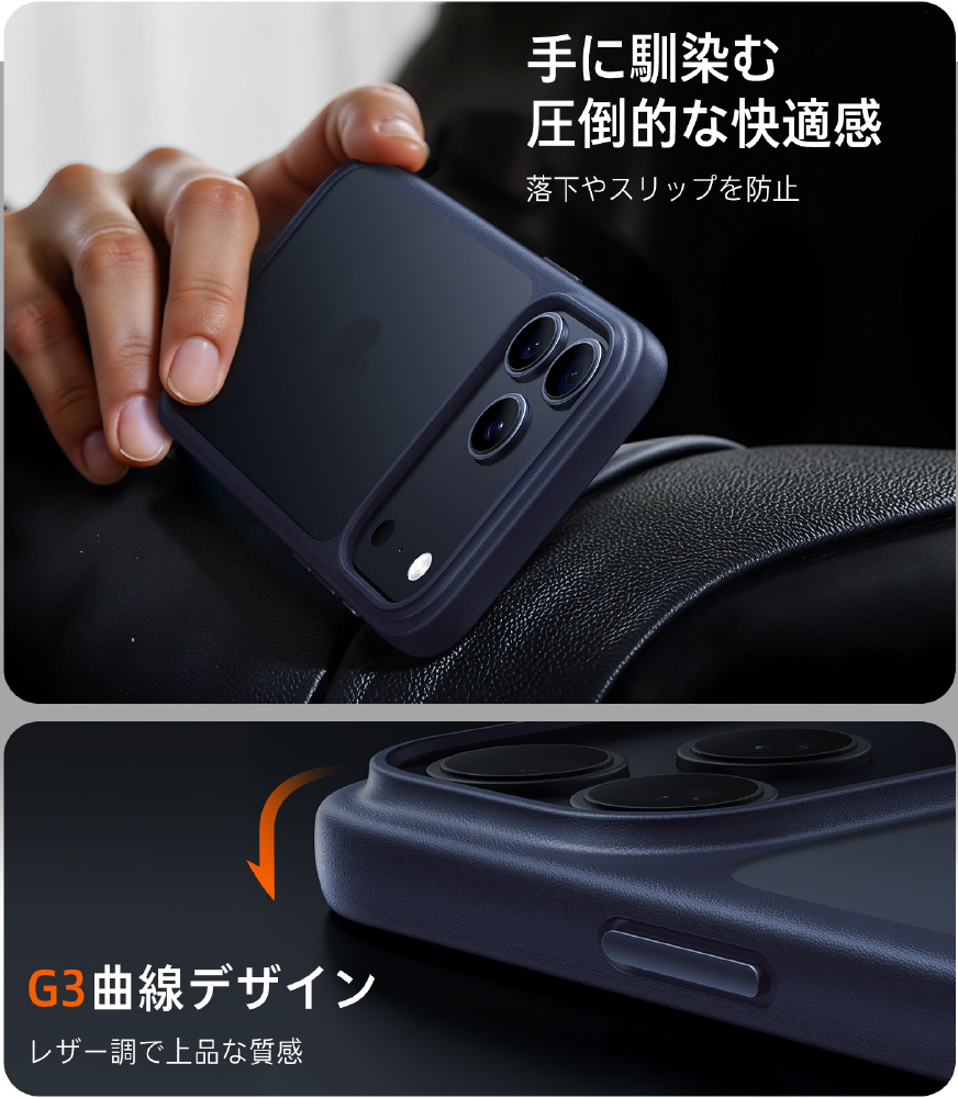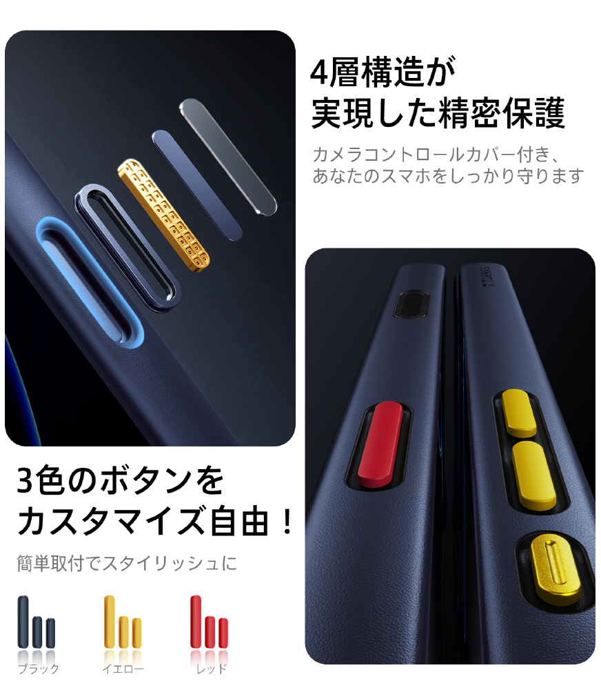 ・360°衝撃を吸収できるエアクッションのデザインのため、衝撃を受けやすい4隅から全方向にスマホとカメラをしっかり保護できます。