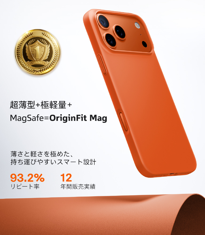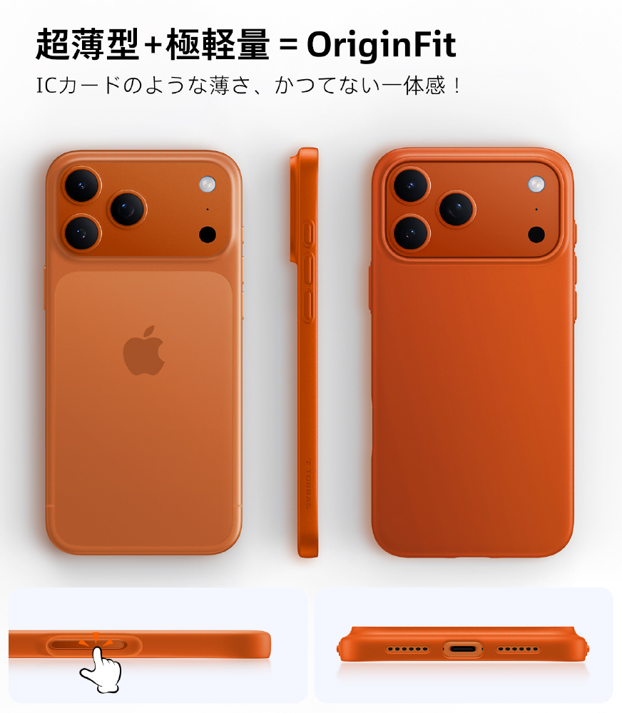 OriginFit-Magは、極薄設計でスマートフォン本来の持ち心地を損なわず、MagSafeにも完全対応。毎日を軽やかに彩るミニマルケースです。