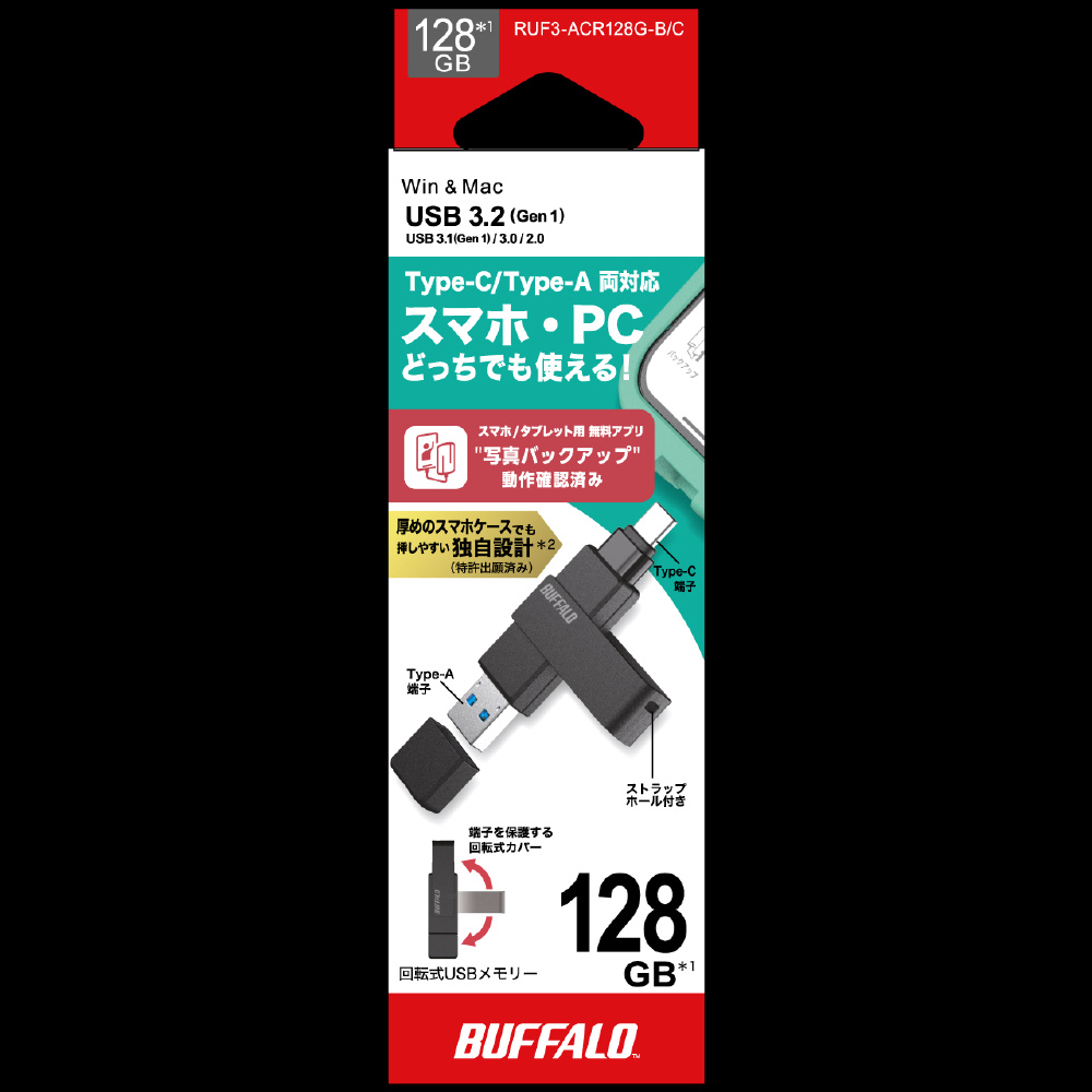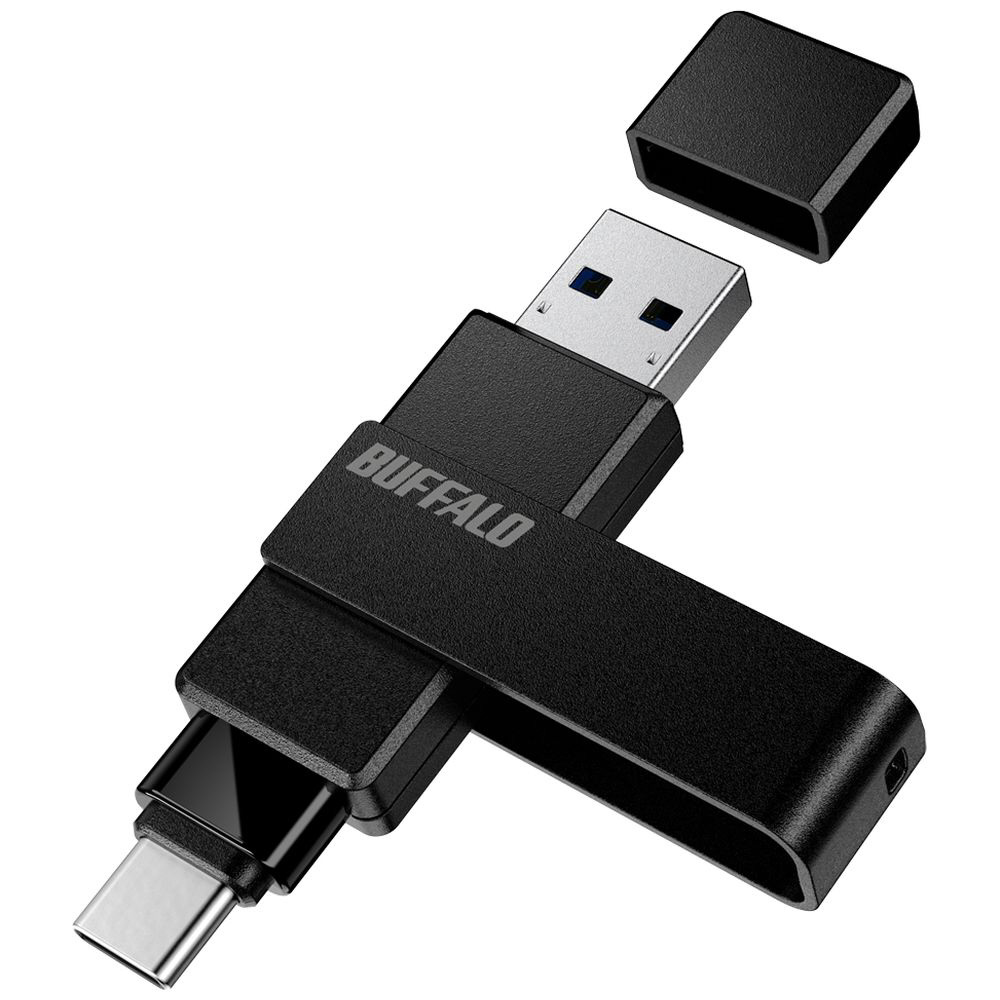 USBメモリ (Chrome/Android/iPadOS/iOS/Mac/Windows11対応) ブラック RUF3-ACR128G-B/C [128GB /USB TypeA+USB TypeC /USB3.2 /回転式]