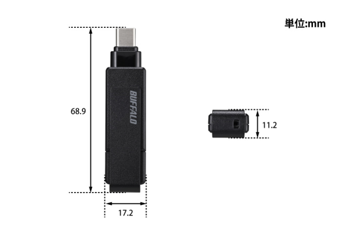 USB Type-C / Type-A両方の端子を備えているため、さまざまな機器に直接つなぐことができるUSBメモリーです。