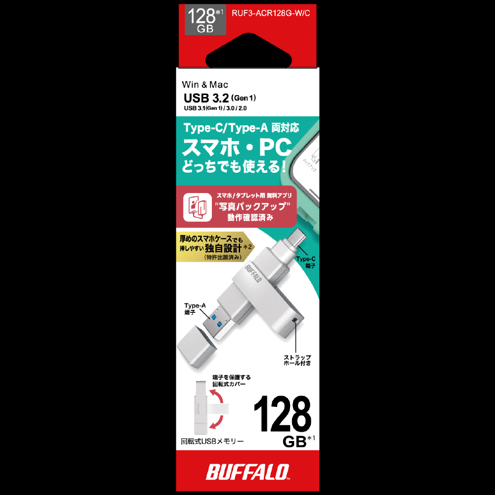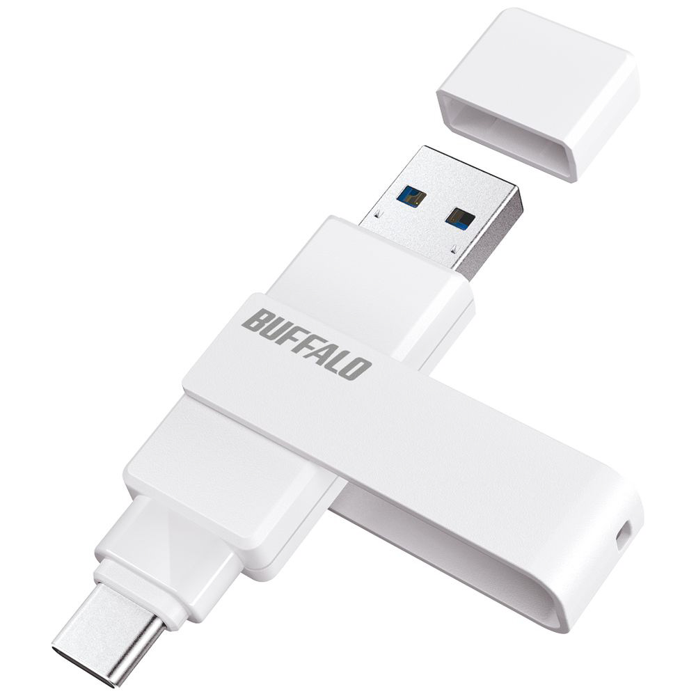 USBメモリ (Chrome/Android/iPadOS/iOS/Mac/Windows11対応) ホワイト RUF3-ACR128G-W/C [128GB /USB TypeA+USB TypeC /USB3.2 /回転式]