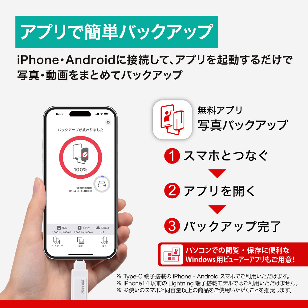 ・アプリの詳細(https://www.buffalo.jp/topics/special/detail/iphone-usb-backup.html)
