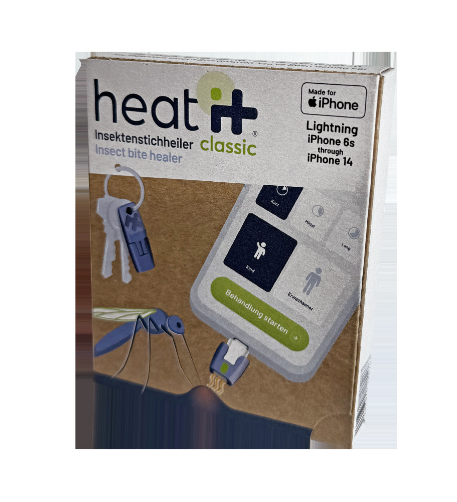 いつも持ち歩ける虫刺され対策機器。ヒートイットはスマートフォンの充電ポートに挿し込んで使用する虫さされ対策機器です。