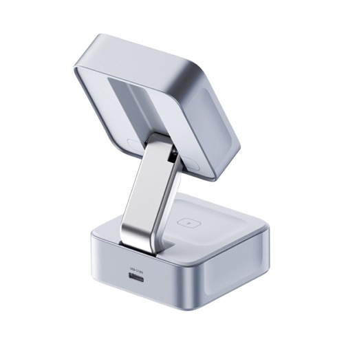 コンパクトな折りたたみ式デザインで持ち運びに便利。展開すると角度調整可能なスタンドになり、視野角を自由に調整できます。iPhoneとAirPodsを同時に充電できます。