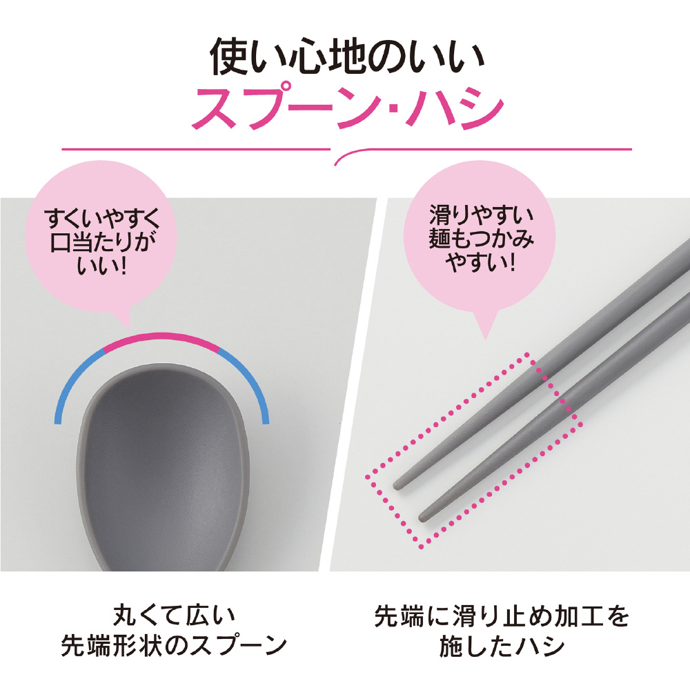 使いやすい長さのスプーンとハシだから、しっかり奥まで届く!