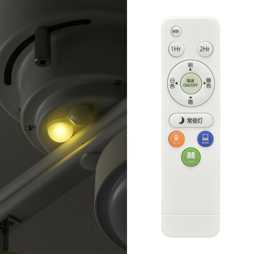 LED4灯シーリングライト ホワイトウッド LT-YLS4RC-W [8畳 /電球色〜白色 /リモコン付属 /電気工事不要]