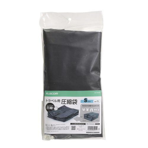 旅行用圧縮袋 15L 圧縮ポーチ トラベルポーチ 衣類収納 手で押すだけ 出張 旅行 繰り返し使用可 ブラック BMA-TRCS02SBK