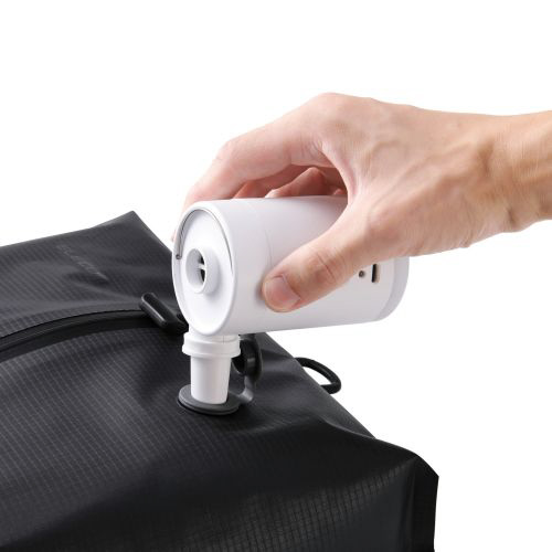 市販の電動エアーポンプなどを使うことで、より薄く圧縮可能。バッグやスーツケース内の無駄なスペースを節約し、より多くの荷物を収納できます。
