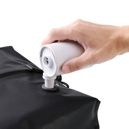 市販の電動エアーポンプなどを使うことで、より薄く圧縮可能。バッグやスーツケース内の無駄なスペースを節約し、より多くの荷物を収納できます。