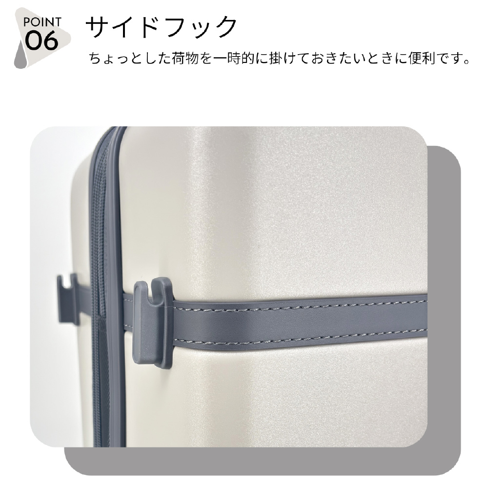 ポリカーボネイト&ABS樹脂を採用し、上品な質感と耐久性を両立。ファッションに合わせやすいダークグレー・ネイビー・アイボリーのシックな3色展開。