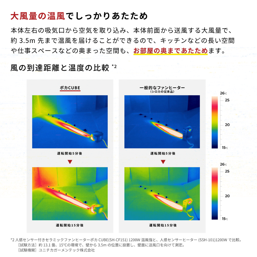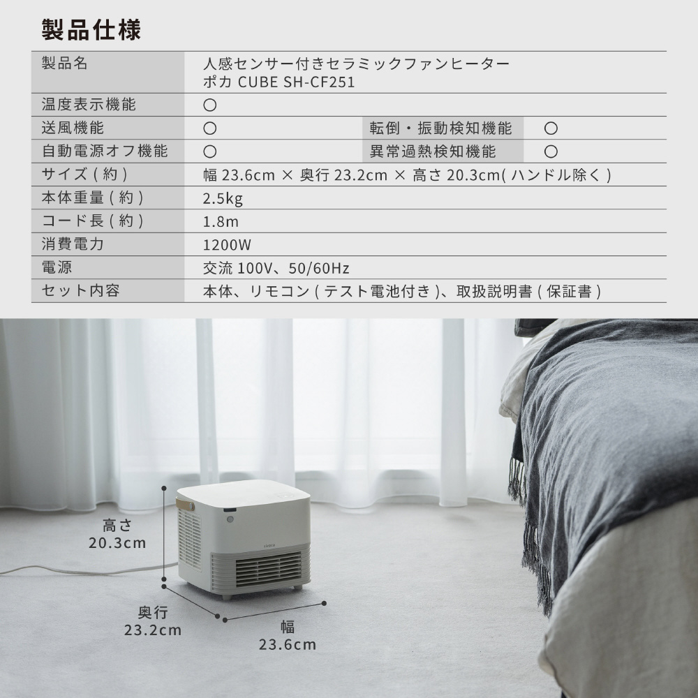 人感センサー付き セラミックファンヒーター ポカCUBE ホワイト SH-CF251 [人感センサー付き]