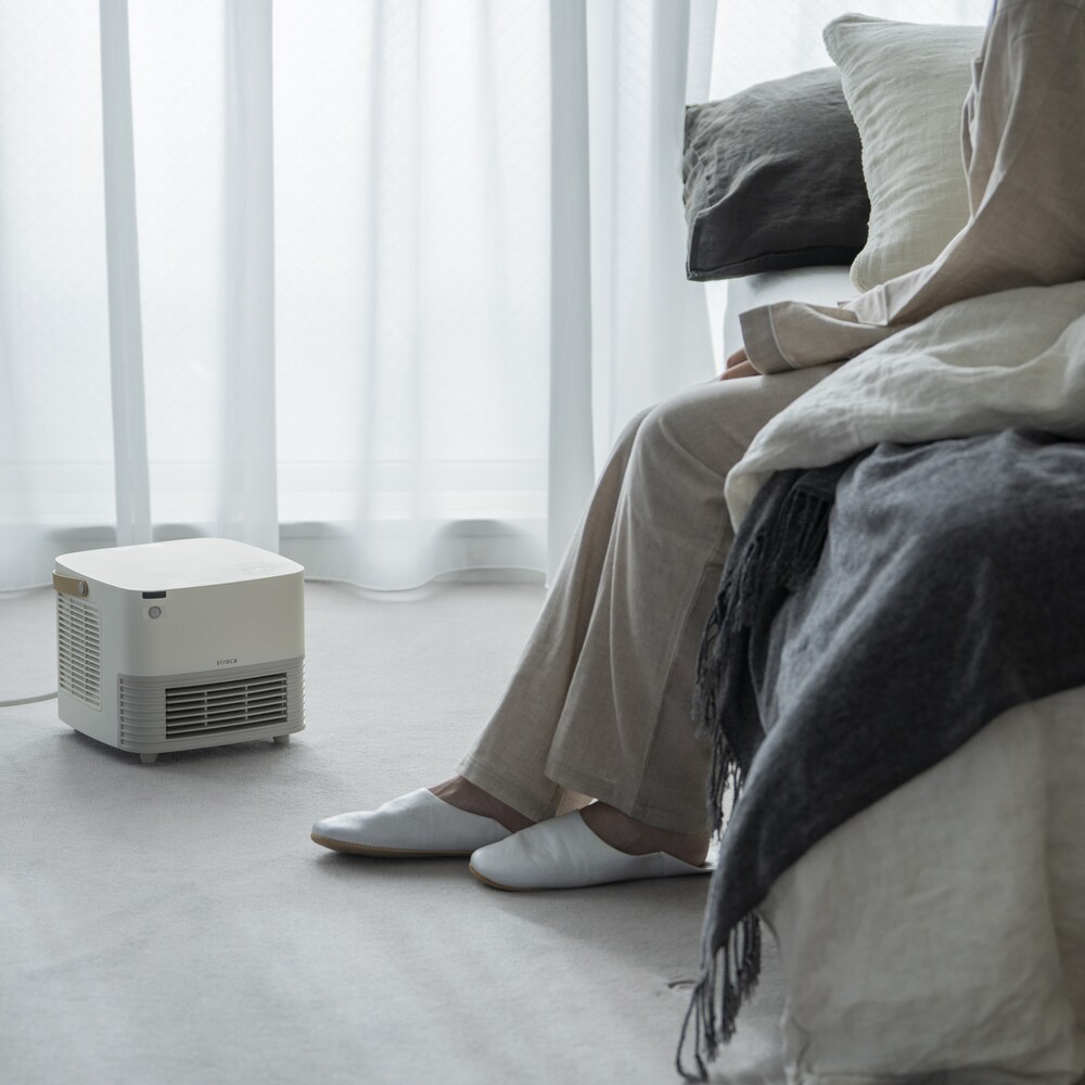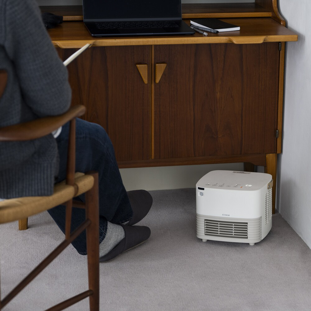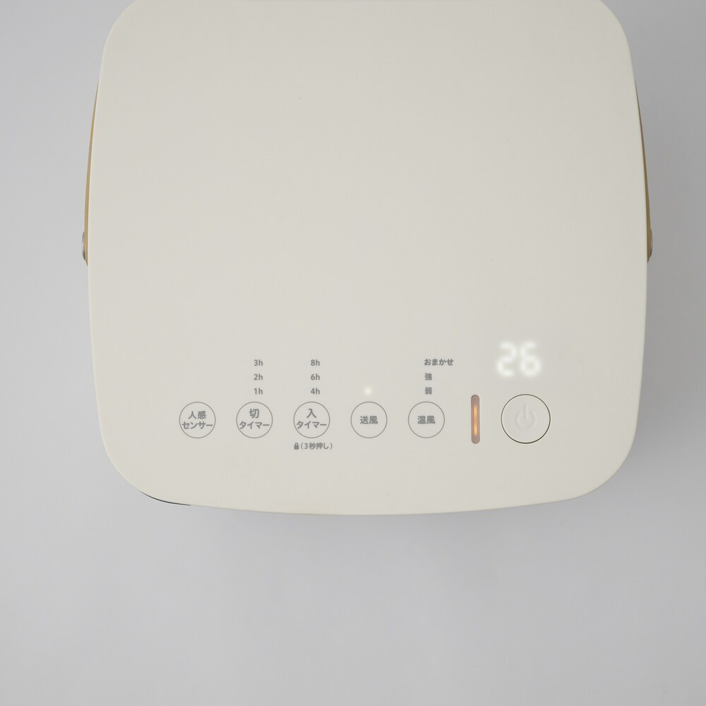 人を感知して自動で運転・停止を切り替える人感センサー付き。その場から離れると自動で運転を停止するため、消し忘れの心配がありません。キッチンや仕事スペースのデスク下などで使用の際、一時的にその場を離れる場合に無駄な運転を防ぐため、節電にもつながります。