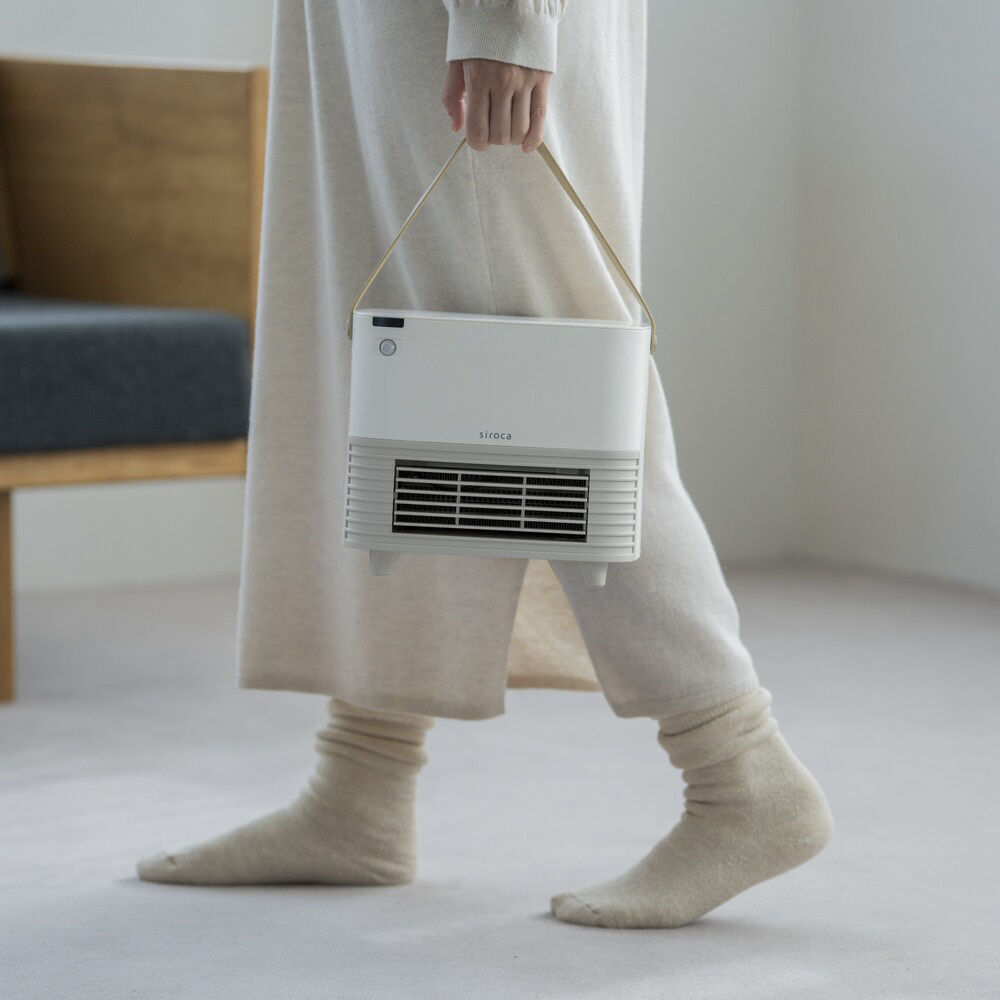 本体はコンパクトかつ、約2.5kgと軽量。さらにハンドル付きで持ち運びやすく、あたたかさが欲しいところへ手軽に持ち運んで使うことができます。