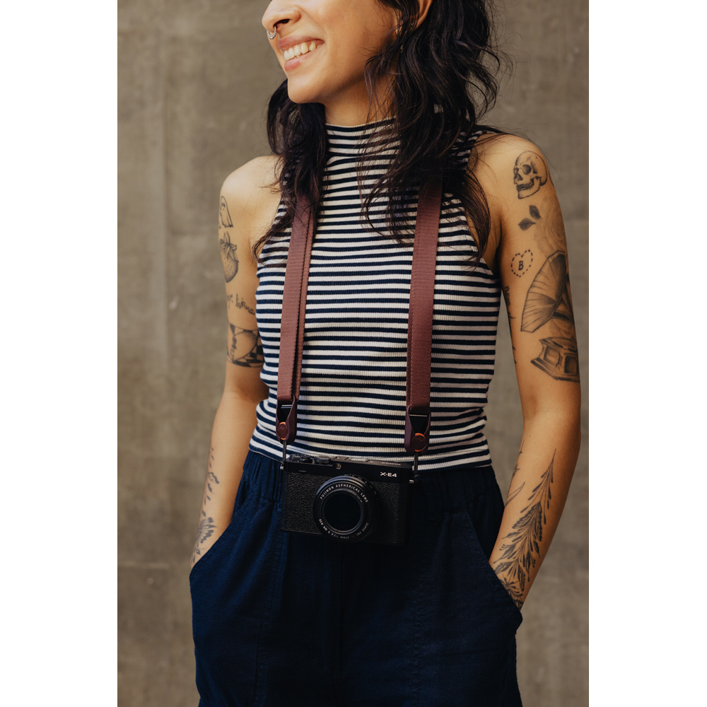 アルミニウムとハイパロン製のクイックアジャスターにより、指1本で長さ調節可能なスマートなストラップ。スリングストラップ、ショルダーストラップ、ネックストラップとして使用できます。