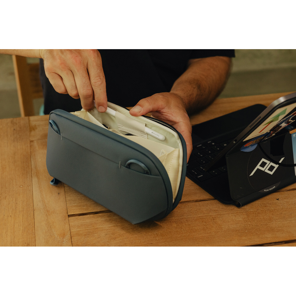 日本の折り紙に着想を得たポケットデザインで、ケーブルや SD カード、バッテリーに充電器など、さまざまな小物類を効率よく整理して収納できます。