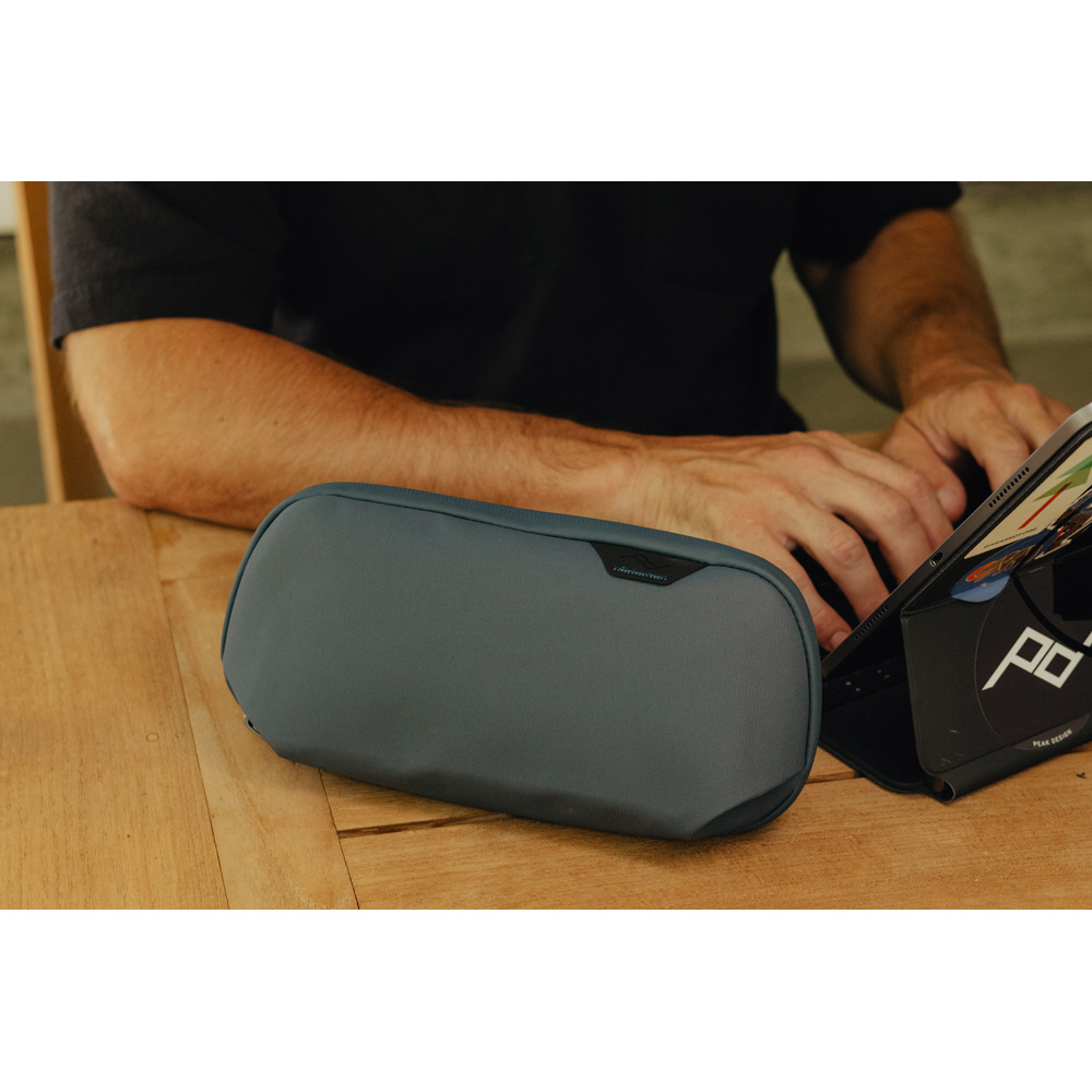 美しいデザインと実用性を兼ね備えた、コンパクトなポーチ。「テクホ?ーチ」と比べて約半分のサイズです。開口部が大きく開き自立するため、視認性とアクセス性にも優れています。