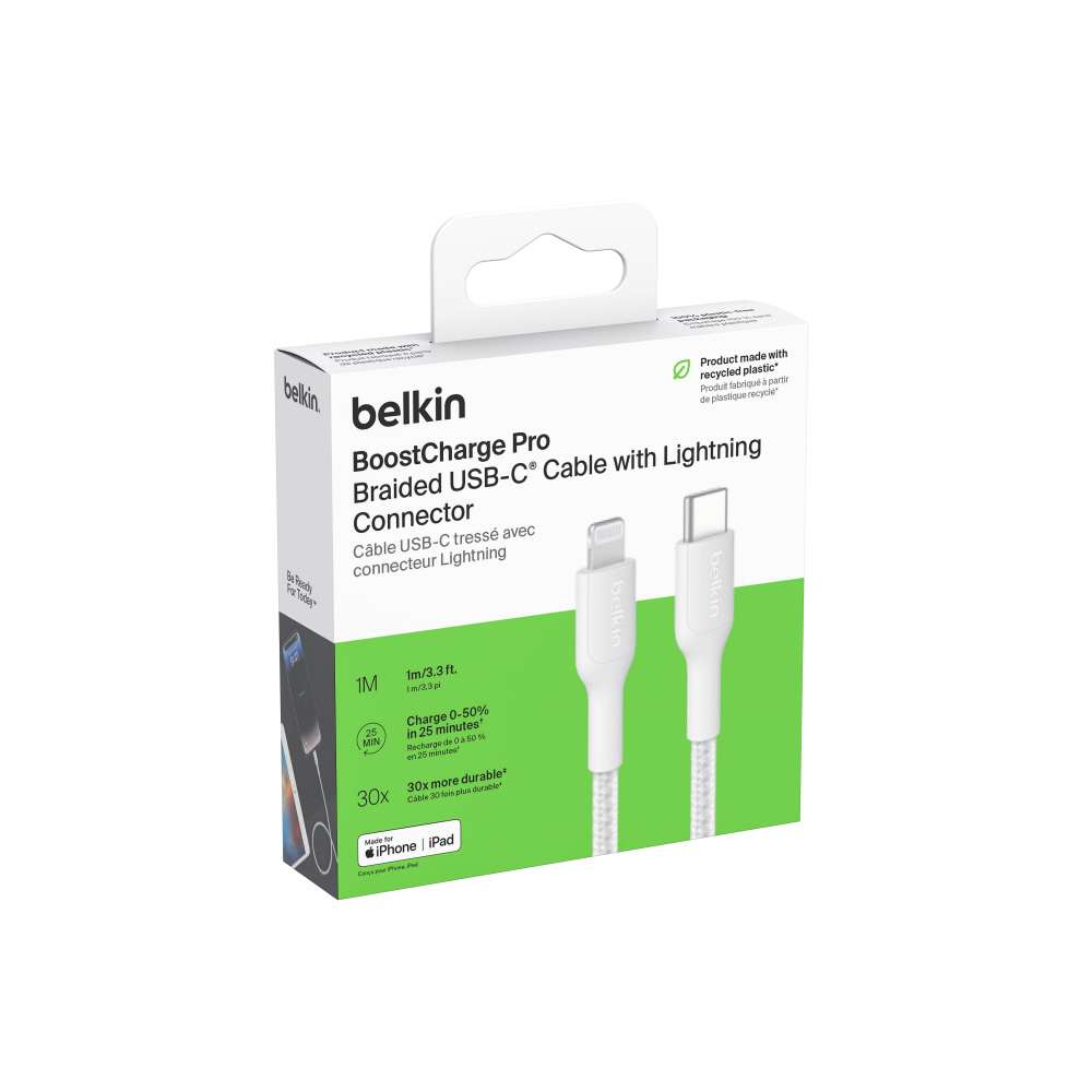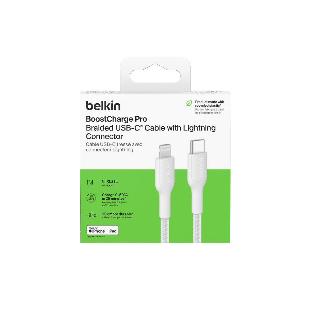 ・Belkin PCR編組を採用し、30000回以上の折り曲げと10000回以上の抜き差しに耐えます。