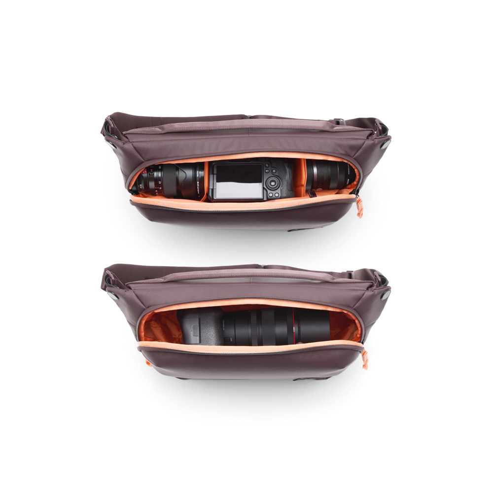 独自構造によりワンアクションで長さを調節可能なストラップ、キャプチャー(別売)を取り付けられる側面のスリットなど、細部 まで使いやすさにこだわったエブリデイスリング10L。