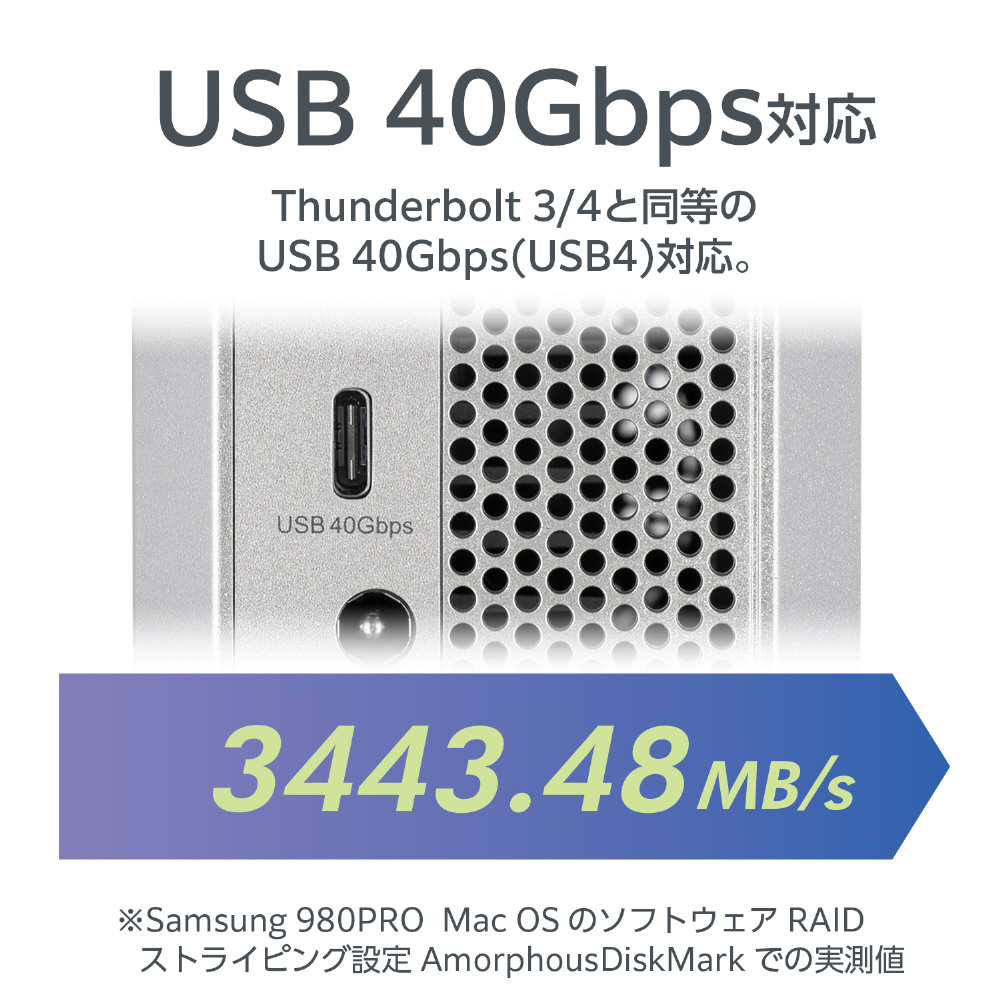 ■USB 40Gbps(Thunderbolt 3/4同等)対応、Macでも、Windowsでも高速データ転送可能
