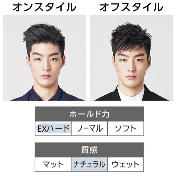 キメたシャープなスタイルを1日中キープ。どんな環境下でも崩れない、ハードなセット力。さらに、ベタつかず、簡単に洗い流せる!