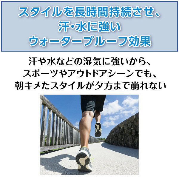 キメたシャープなスタイルをキープ。どんな環境下でも崩れない、ハードなセット力。ウォータープルーフ処方