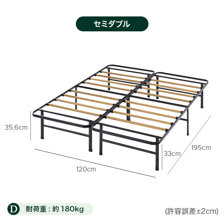 サイズ(幅×長さ×高さ)cm 120×195×35.6(フレーム下33)cm