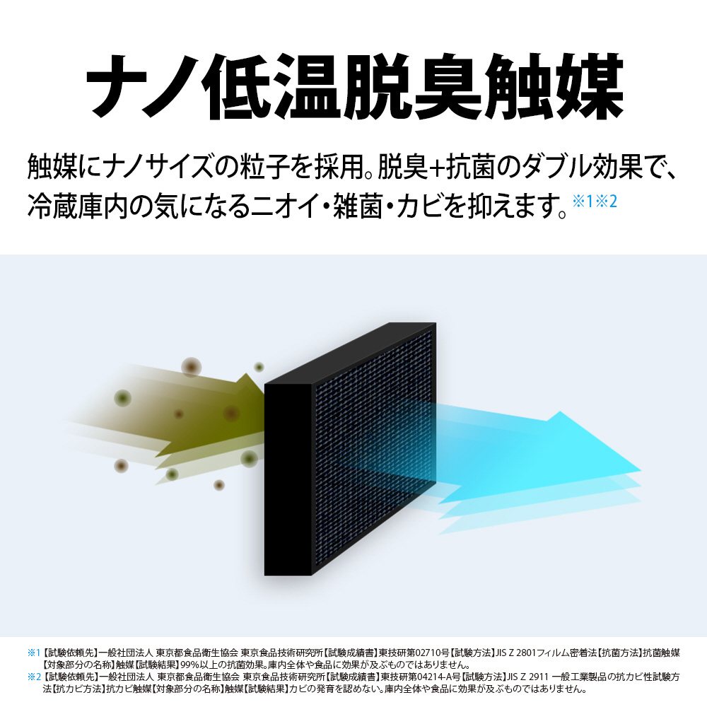 ■触媒にナノサイズの粒子を採用。脱臭+抗菌のダブル効果で気になるニオイ・雑菌・カビを抑えます。