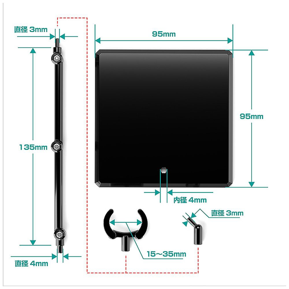 挟み込むクリップ型の固定パーツと、狭い場所にも差し込める延長ピンが付属。