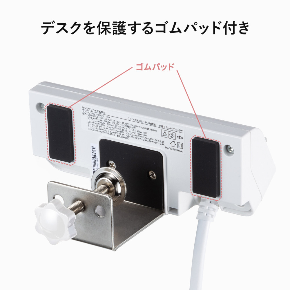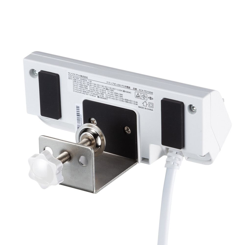 デスクにUSB電源を後付けできるUSB PD規格に対応したクランプ式USB充電器。USB4ポート。