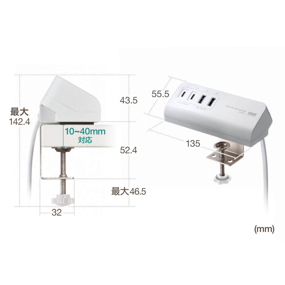 ■デスク天板にしっかり固定できるクランプ式のUSB充電器で、片手でスムーズにケーブルの抜き差しが行えます。