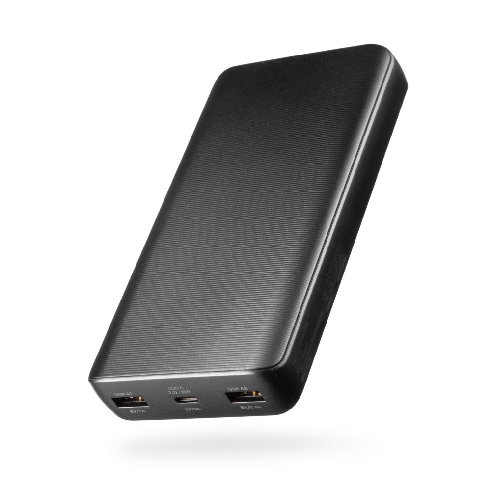 モバイルバッテリー(20000mAh) 薄型 USB-C/USB A 15W 充電ケーブル付属 PSE適合品 持ち運びしやすい ブラック BTL-RDC41BK