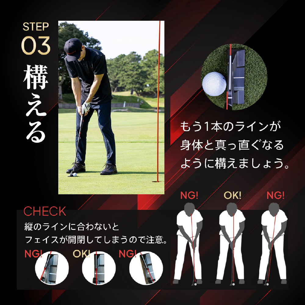 ・垂直ライン設計:ラインを合わせるだけでフェースの向きを一目で合わせられる。