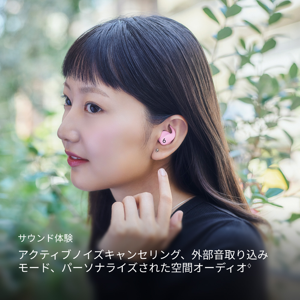 ・アダプティブイコライゼーションは、先進的なマイクを使ってユーザーの耳に届く音を測定、イヤーバッドの装着状態と密閉度に合わせてオーディオ出力を調節することで、 ユーザーに最適なサウンドを届けます。