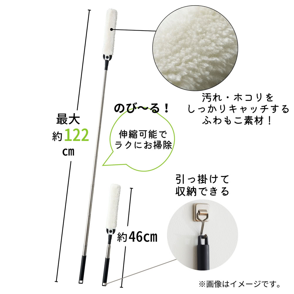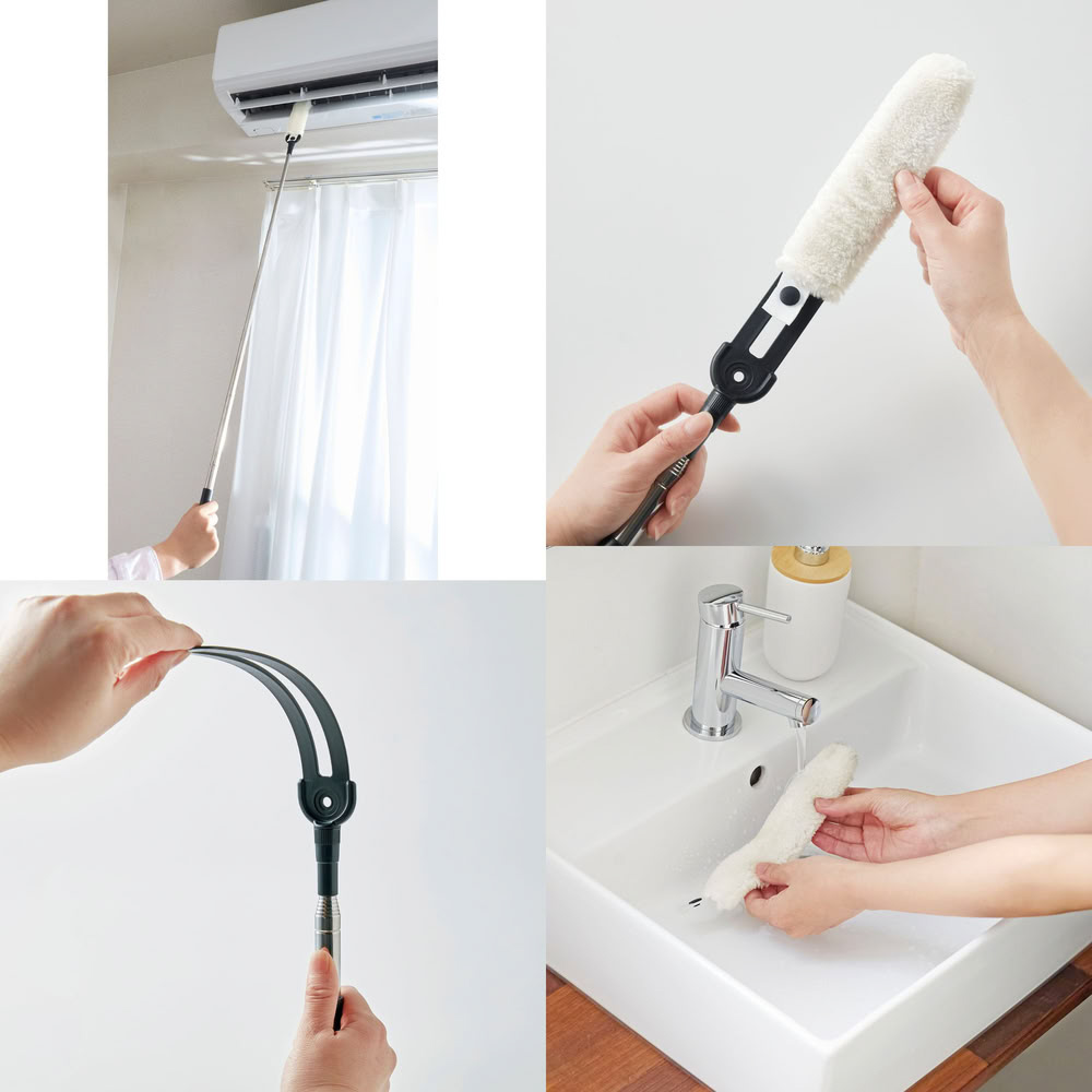 最大約122cmまで伸ばせる持ち手で、ラクにエアコン掃除ができます。