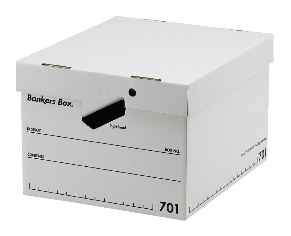 バンカーズボックスは、軽くて丈夫・経済的な段ボール素材の保管・収納ボッ クスです。