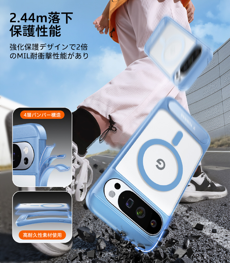 ・2.44m落下防止性能:フレーム部分の強化保護デザインで2倍のMIL耐衝撃性能