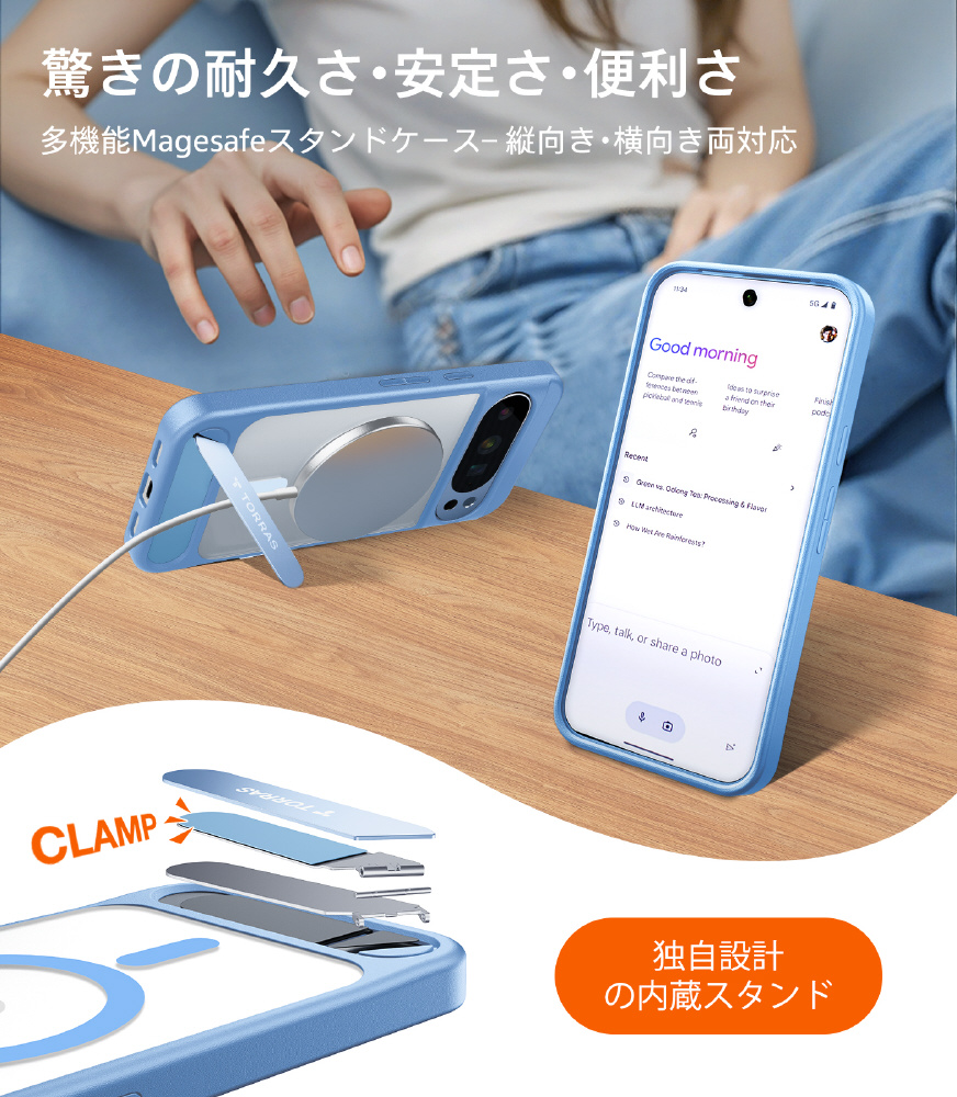 Torras - Pstand Case for Pixel 10 / 10 Pro ライトブルー